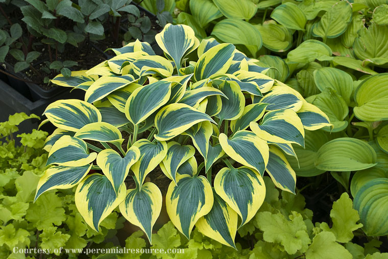 ‘Tardiflora’. It is a medium to large hosta, with unique yellow and