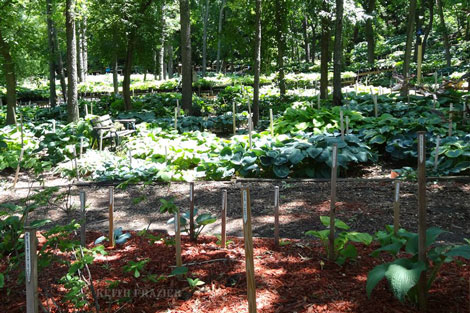 the hostas were nicely tagged with high poles, and the funny story is