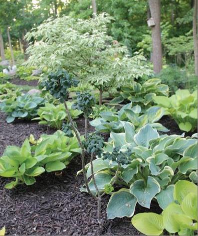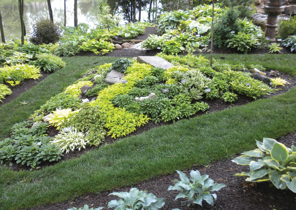 Hostas.” He suggests planting hostas in various shapes, shades and