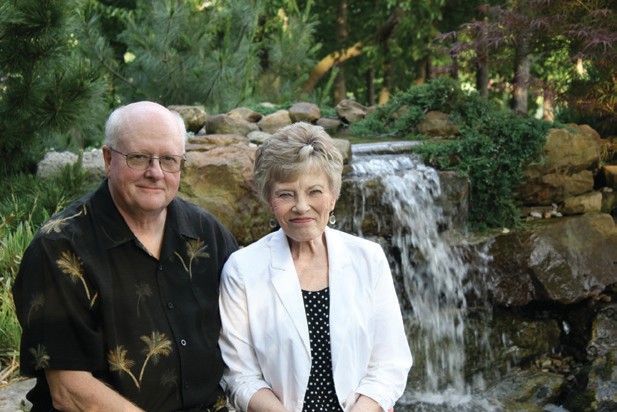 and Susie Goodwin sit in front of their Green County stone water