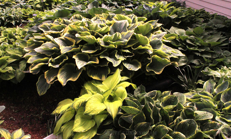 thousand varieties of hostas growing in my yard and flowing into my